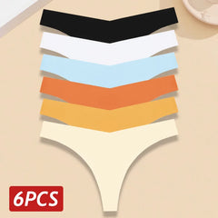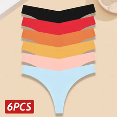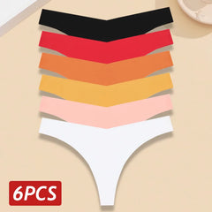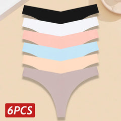 INTIMO SECRETS 6-Pack Women’s Seamless V-Waist Thongs – Ultra-Thin Summer G-String Panties