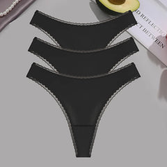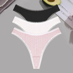 INTIMO SECRETS 3PCS Dot Print Thongs – Seamless Low-Waist Lace G-String Underwear for Women