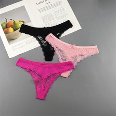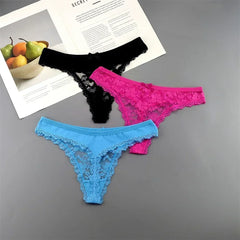 INTIMO SECRETS Plus Size Lace Cotton Thongs – Seamless T-Back G-String Underwear for Women 3PC