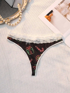 INTIMO SECRETS Sexy Christmas Print G-String – Festive Lace Thong & Breathable Soft Holiday Lingerie