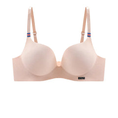This English ice silk French minimalist bra set offers a comfortable, seamless fit with a thick cup for subtle lift and gathering. Perfect for women who want wire-free support, elegance, and daily comfort in one set.