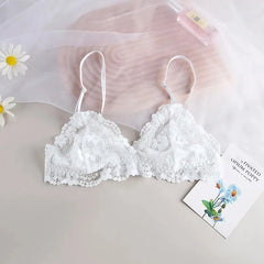 Soft, lightweight, and sexy lace bralette designed for women. This unlined triangle cup bra features delicate lace detailing and a thin, breathable design, providing a natural shape and gentle support without wires. Perfect for daily wear, casual outfits, or as elegant and sexy lingerie. Adjustable straps and a secure back hook-and-eye closure ensure a comfortable, customized fit.