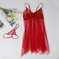 2024 New Lace Sexy Women Nightgown Split Sexy Short Skirt Pajama Sheer Seduction Set With G-String Split Dress For Women Gift