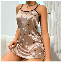 Women's Sleepwear Summer Floral Print Satin Nightgown Casual Sleeveless Backless Slip Night Dress Sexy Nightdress Home Clothes