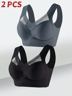 INTIMO SECRETS 2PCS Lace Sport Bras Plus Size Seamless Bra Bralette Backless Lady Brassiere Vest Female Gather Shock-Proof Wireless L-3XL