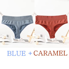2PCS/Set Seamless G-String Panties Women Thongs Sexy Panty Lingerie Solid Color Female High Waist Thongs Women's Underwear