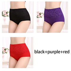 Plus Size Women's Cotton Underwear High Waisted Tummy Control Panties Full Coverage Briefs Jacquard Ladies Panty 3 Pack